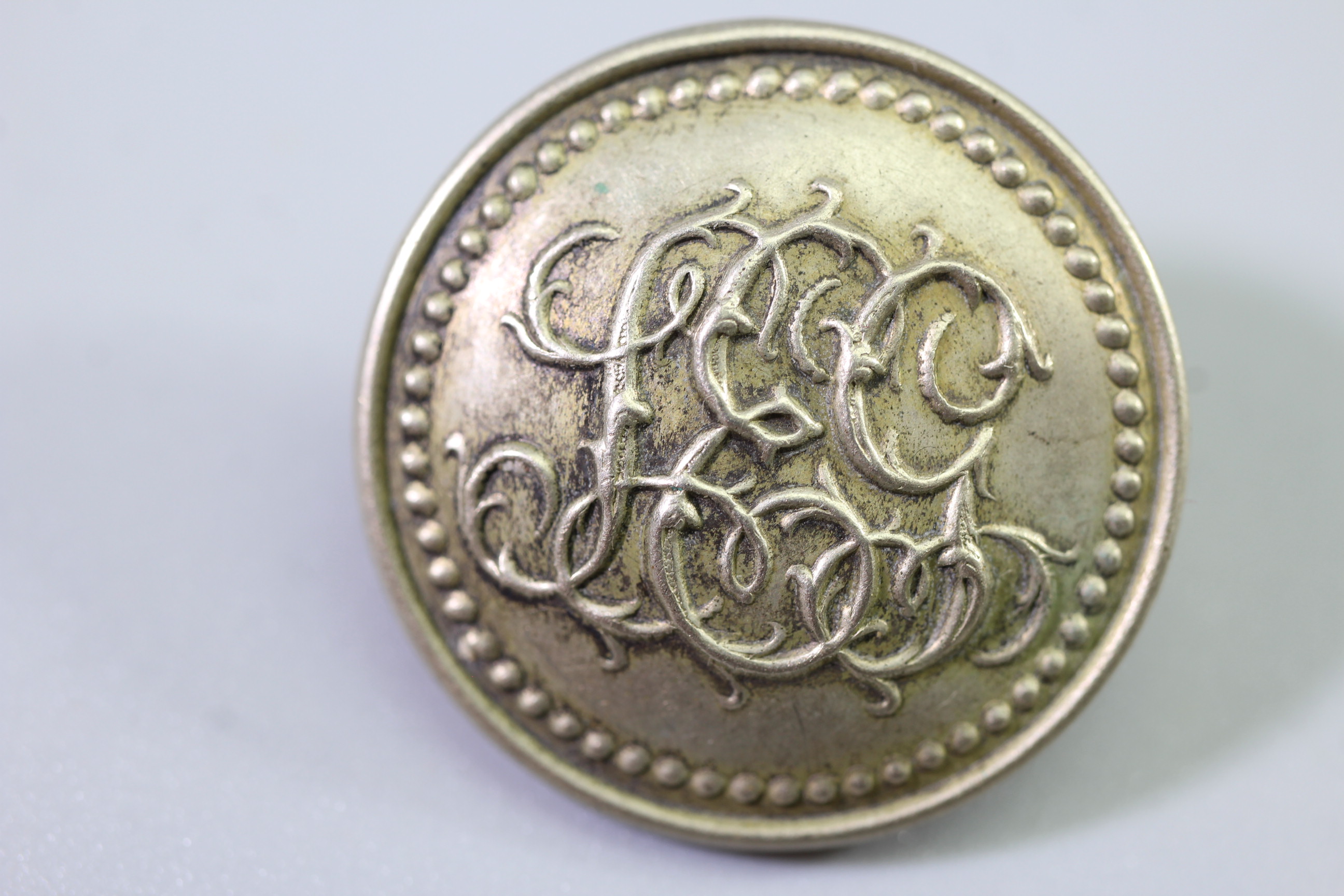 Original Metall Uniform Knopf Uniformknopf sogenannter Livreeknopf, Bestand aus einer alten Uniformschneiderei