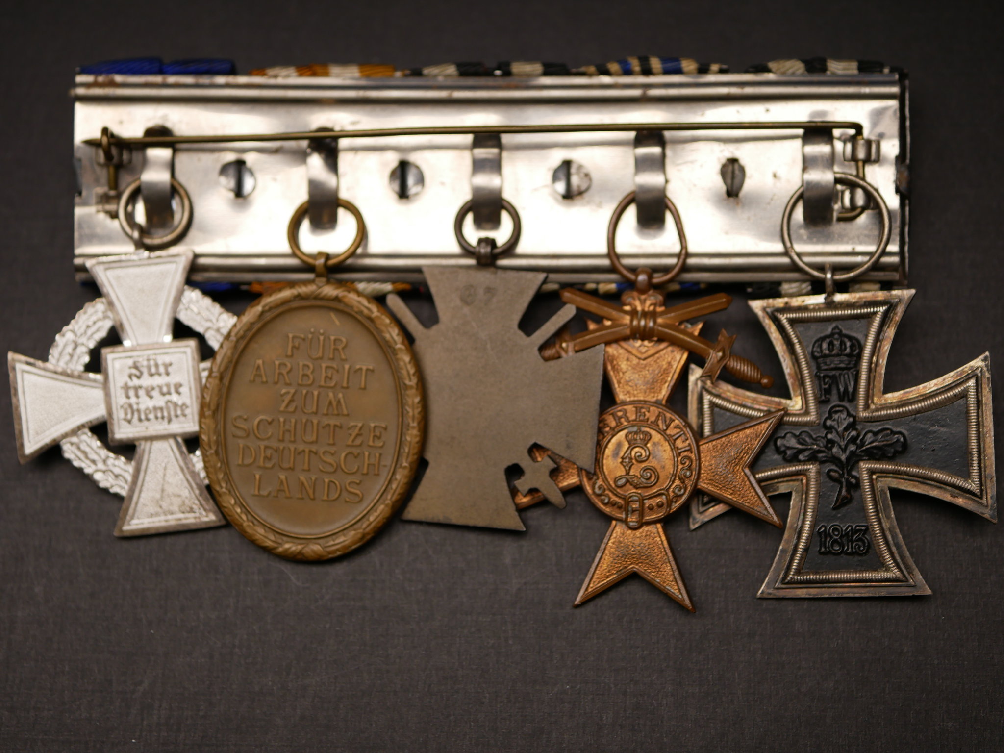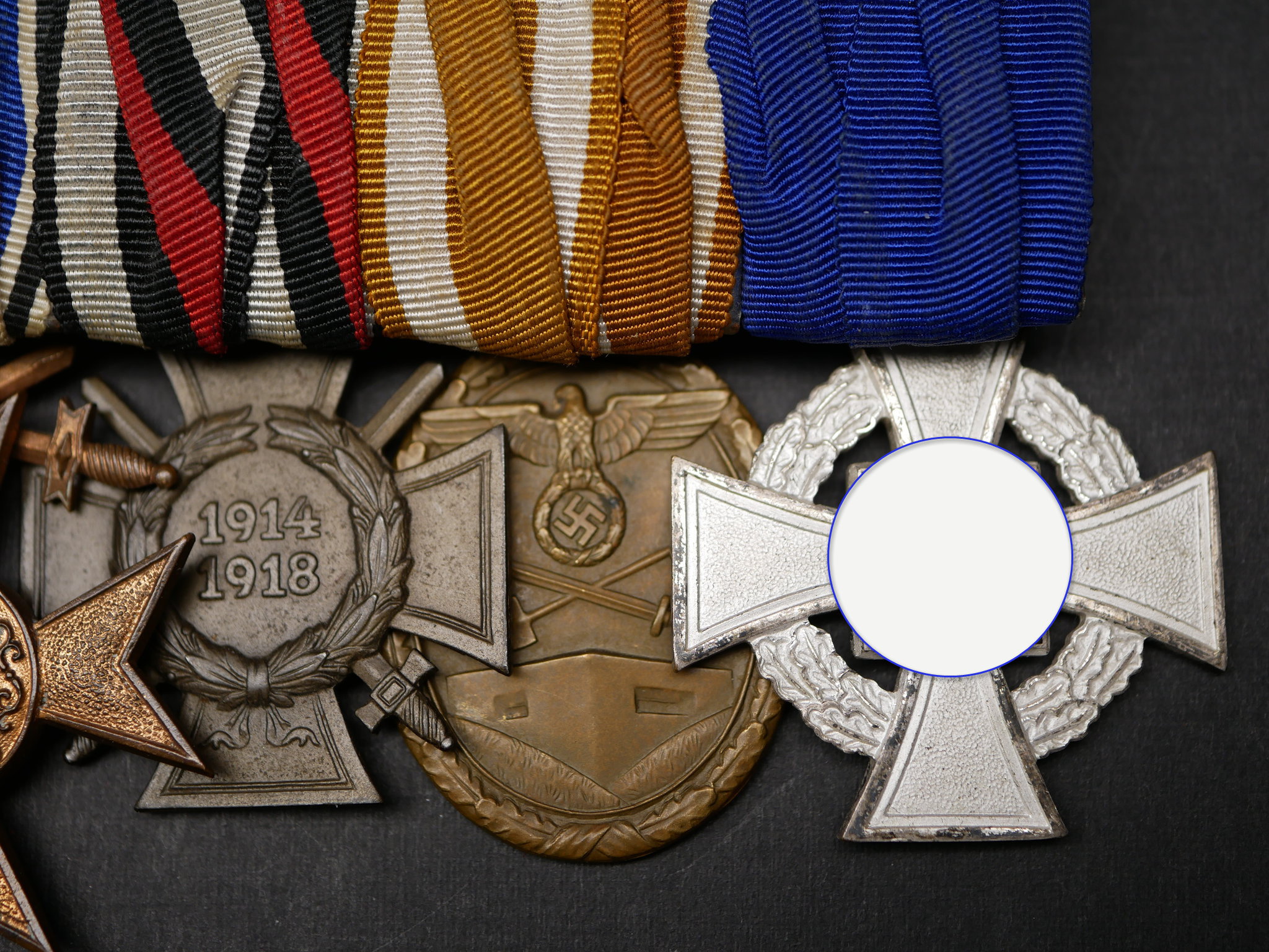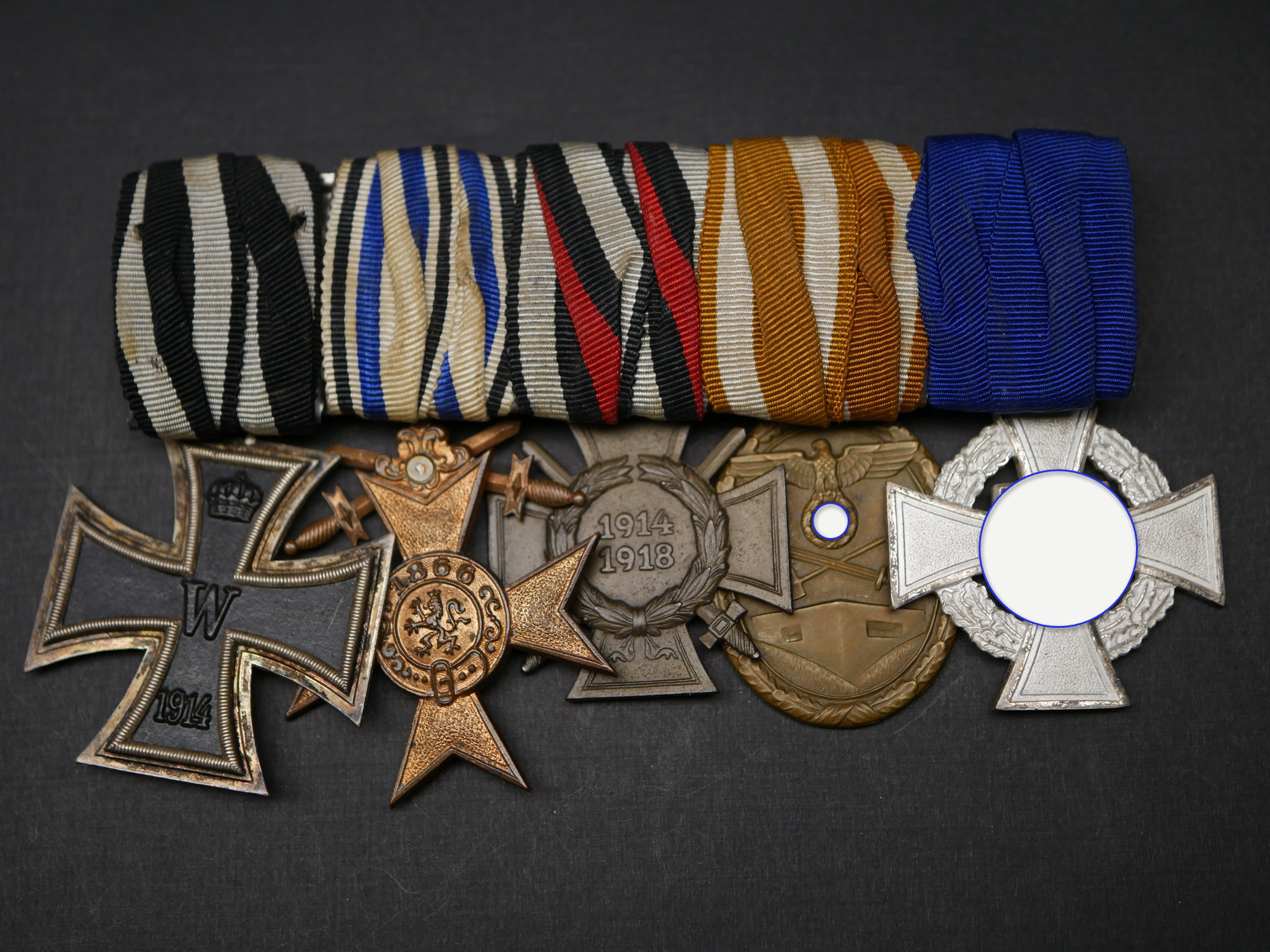 5er Ordensspange 1.WK + 2. WK - EK2 1914 + Bayern + KTK + Schutzwall + Treue Dienste