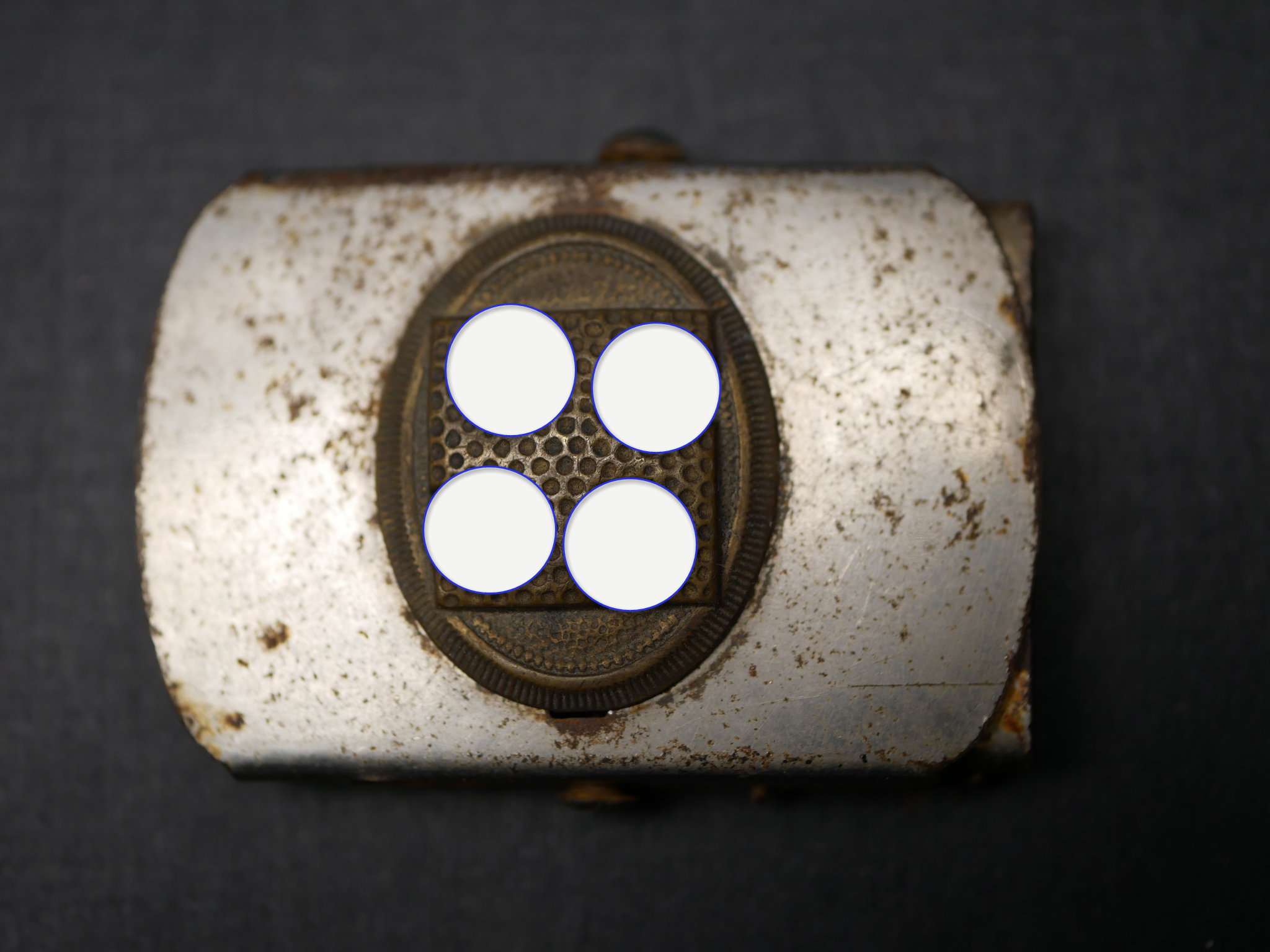 Kleines Sympathie Koppelschloss mit liegenden HK. Maße 48 x 32 mm