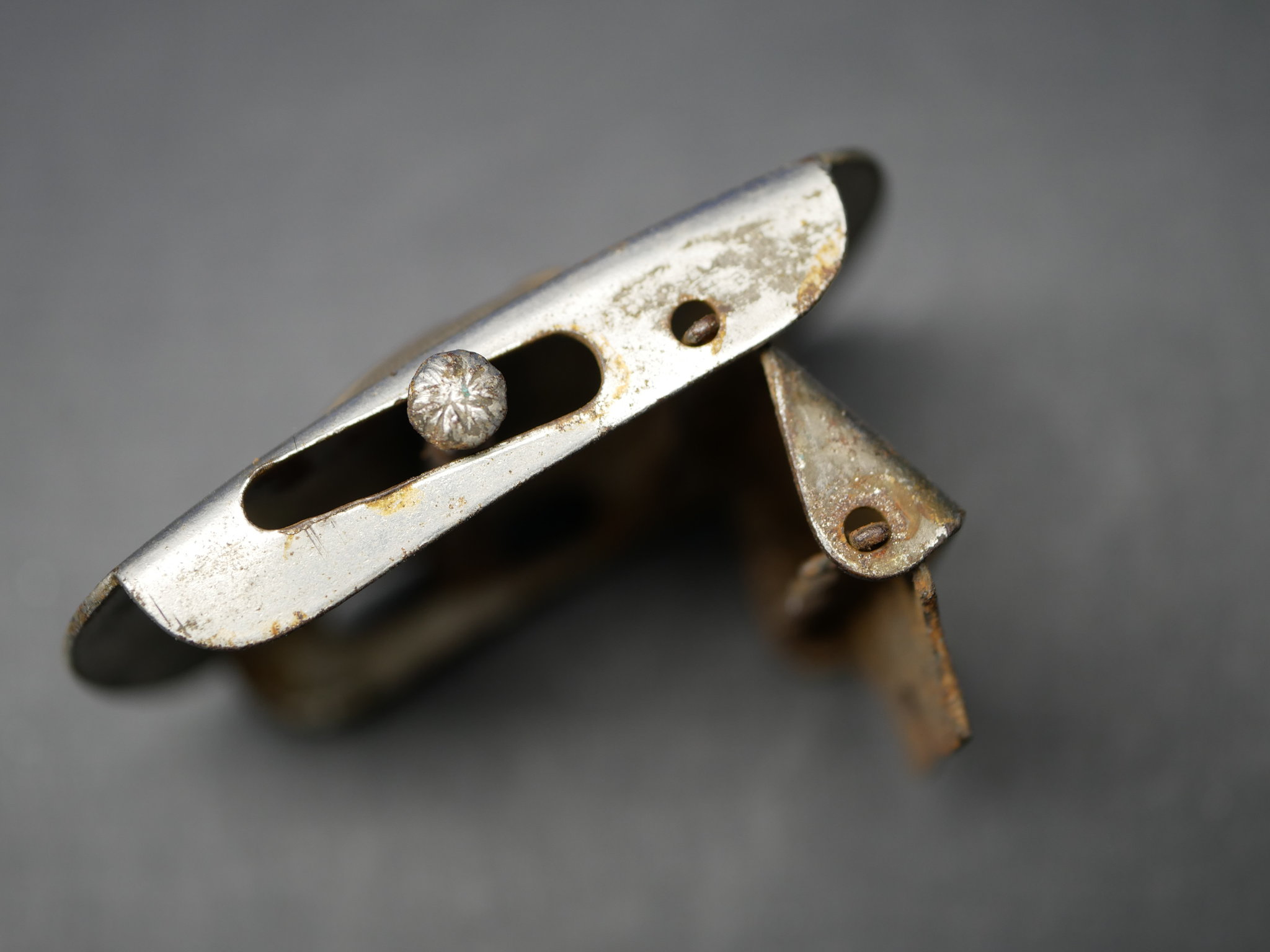 Kleines Sympathie Koppelschloss mit liegenden HK. Maße 48 x 32 mm.