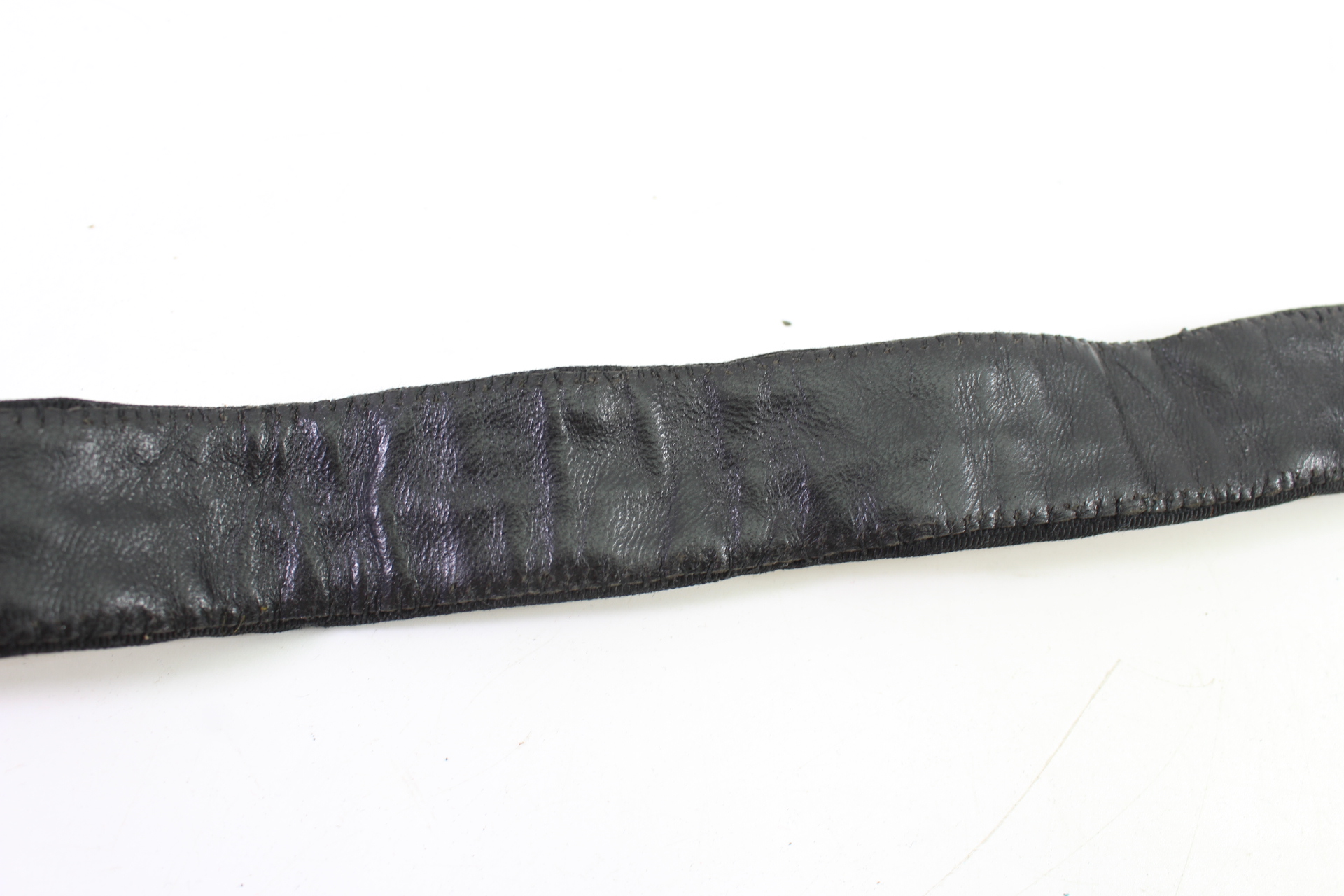 Riemen ca 1m lang und 3 cm breit, Schwarzer Lederriemen mit Goldfaden gestickte Eicheln Muster, Riemen kann nicht genau bestimmt werden. Am hinteren Ende befindet sich eine Leder Öse welche geöffnet ist und neu genäht werden muss