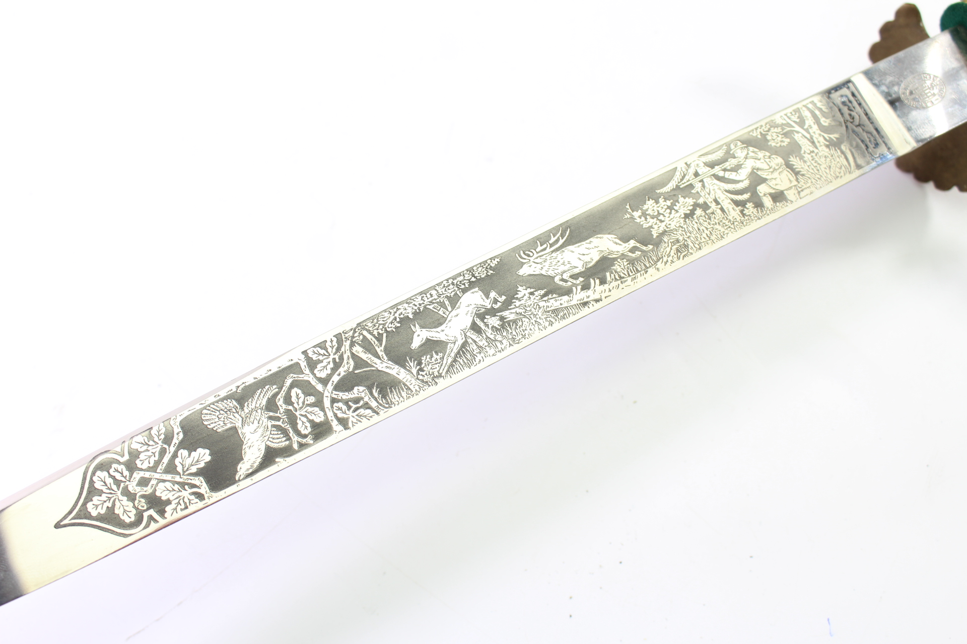 Hirschfänger dieser Art wurden historisch von Jägern und Förstern zum Abfangen von Wild verwendet und gelten als Ehrenwaffe des Jägers.