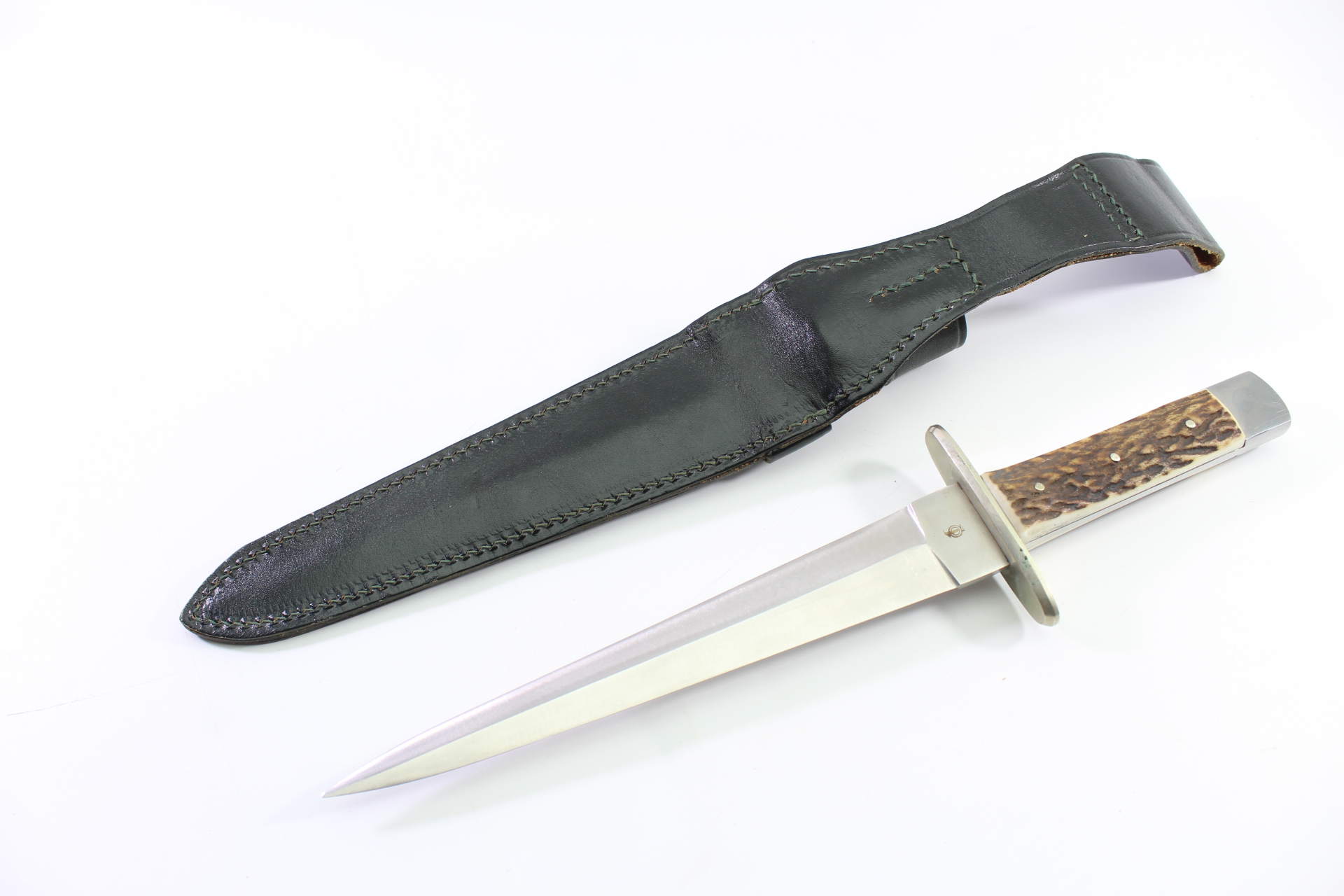 Mobile Preview: GDR knife / hunting knife from the GML Leegebruch knife forge, with leather sheath.