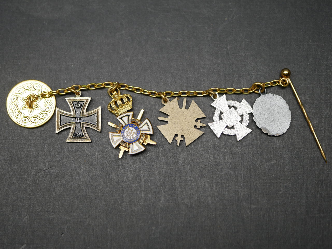 Medal bar 1st + 2nd World War - Iron Cross 2nd Class 1914 + Royal House Order of Hohenzollern, Knight's Cross with Swords + War Participant's Cross + 25 Faithful Services +++