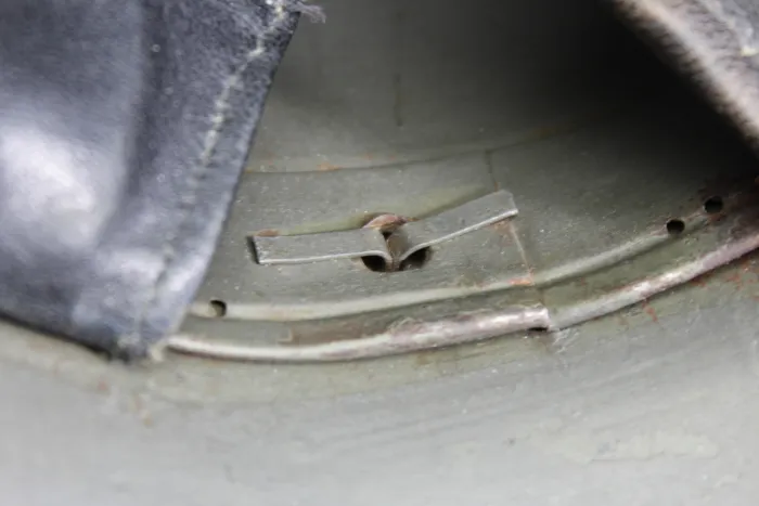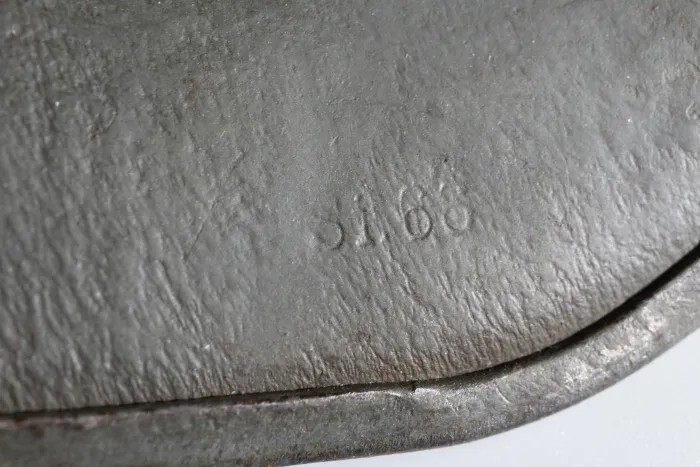 The original paintwork is exceptionally well preserved and even. The helmet shell bears the SI 68 stamp on the side. Manufacturer SI stands for Eisenhütte Silesia, Paruschowitz O/Silesia. The leather lining is attached at three points and is complete. The padding consists of horsehair or straw, and the inner metal ring corresponds to the design from 1917 onwards. One small bag in the head padding is only minimally filled. The helmet shell is additionally stamped in the center with Bj 708.