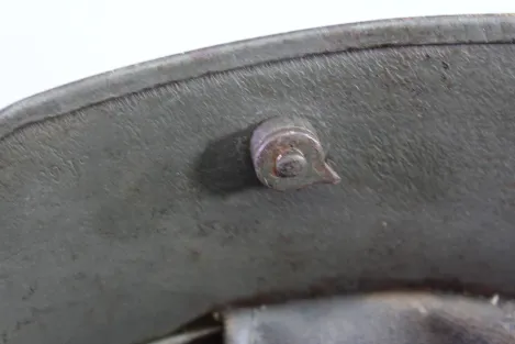The original paintwork is exceptionally well preserved and even. The helmet shell bears the SI 68 stamp on the side. Manufacturer SI stands for Eisenhütte Silesia, Paruschowitz O/Silesia. The leather lining is attached at three points and is complete. The padding consists of horsehair or straw, and the inner metal ring corresponds to the design from 1917 onwards. One small bag in the head padding is only minimally filled. The helmet shell is additionally stamped in the center with Bj 708.